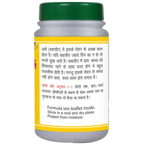 This Ayurvedic medicine helps stimulate digestion, promotes smooth bowel movements, and reduces strain during passing stools. It is known for its laxative and detoxifying properties, which help cleanse the digestive system and prevent toxin buildup. Regular use under expert guidance may help shrink pile mass, reduce local swelling, control bleeding, and relieve discomfort associated with haemorrhoids and fistula.