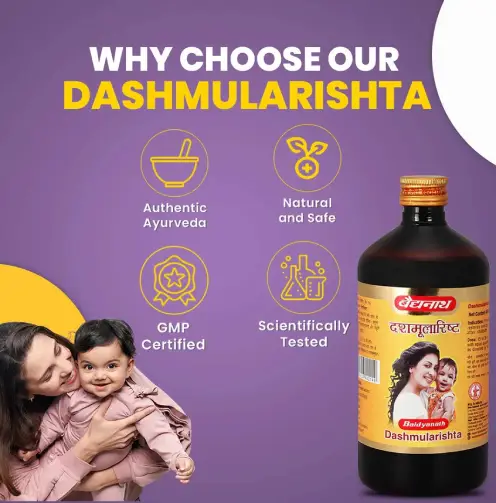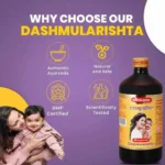 Dashmularishta is especially beneficial for women after childbirth, as it helps nourish the body, improve vitality, and support hormonal balance. It assists in regulating menstrual health and maintaining overall reproductive wellness. The formulation also plays an important role in improving digestion by enhancing metabolism and reducing bloating, gas, and heaviness after meals.