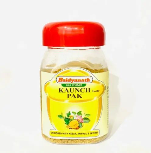 Baidyanath Kaunch Pak Forte is a powerful Ayurvedic formulation specially prepared to support physical strength, stamina, and reproductive health. It contains Kaunch Beej along with Safed Musli, Kali Musli, Ashwagandha, Talmakhana, and other rejuvenating herbs that help nourish the body and boost overall vitality.