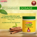 In addition to respiratory benefits, Sitopaladi Churna supports digestion by improving appetite and relieving indigestion. Its cooling nature helps reduce burning sensation in the body, especially in hands and feet due to pitta imbalance. It also helps in managing fever-related weakness and fatigue.